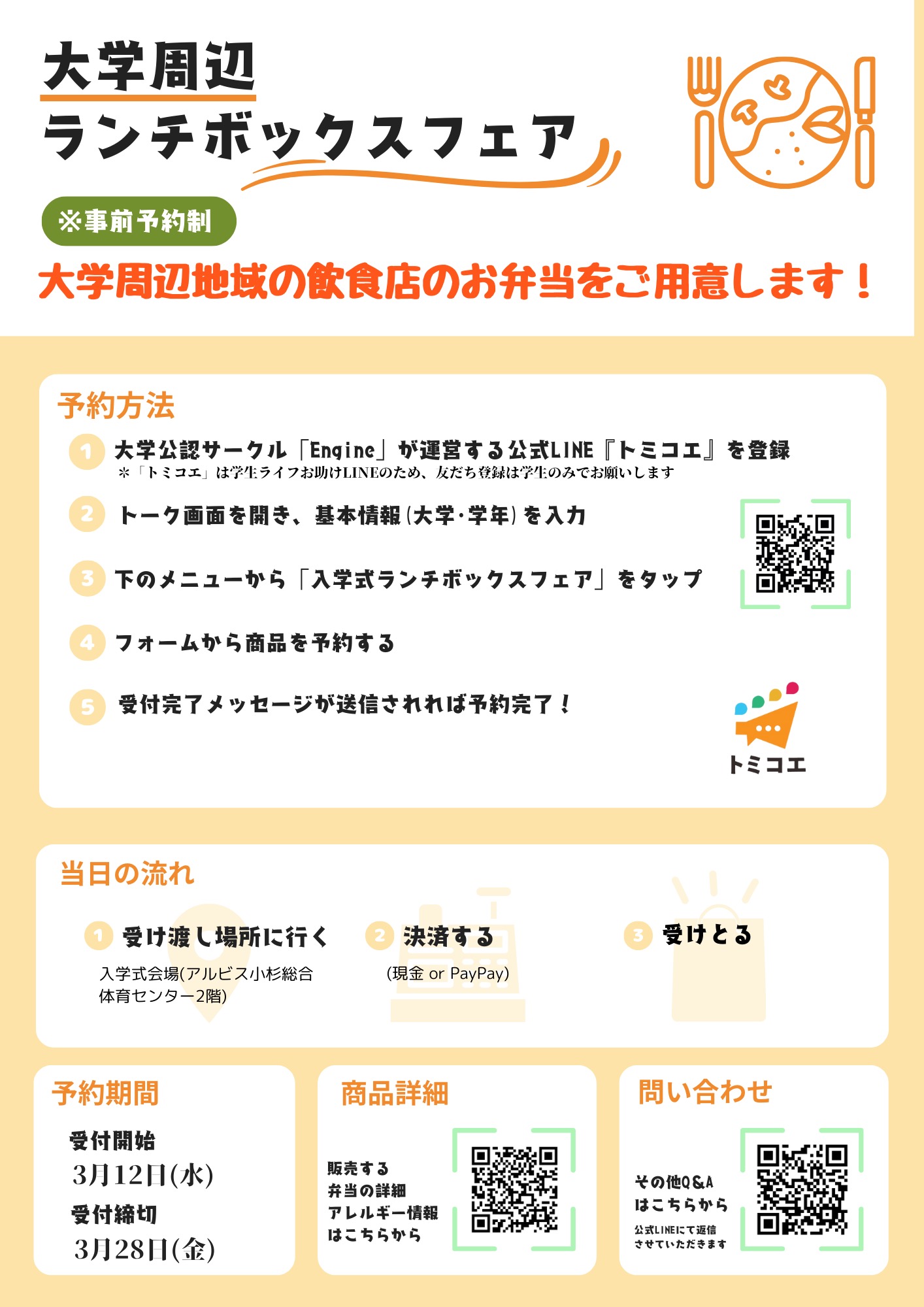 1.大学公認サークル「Engine」が運営する公式LINE『トミコエ』を登録
