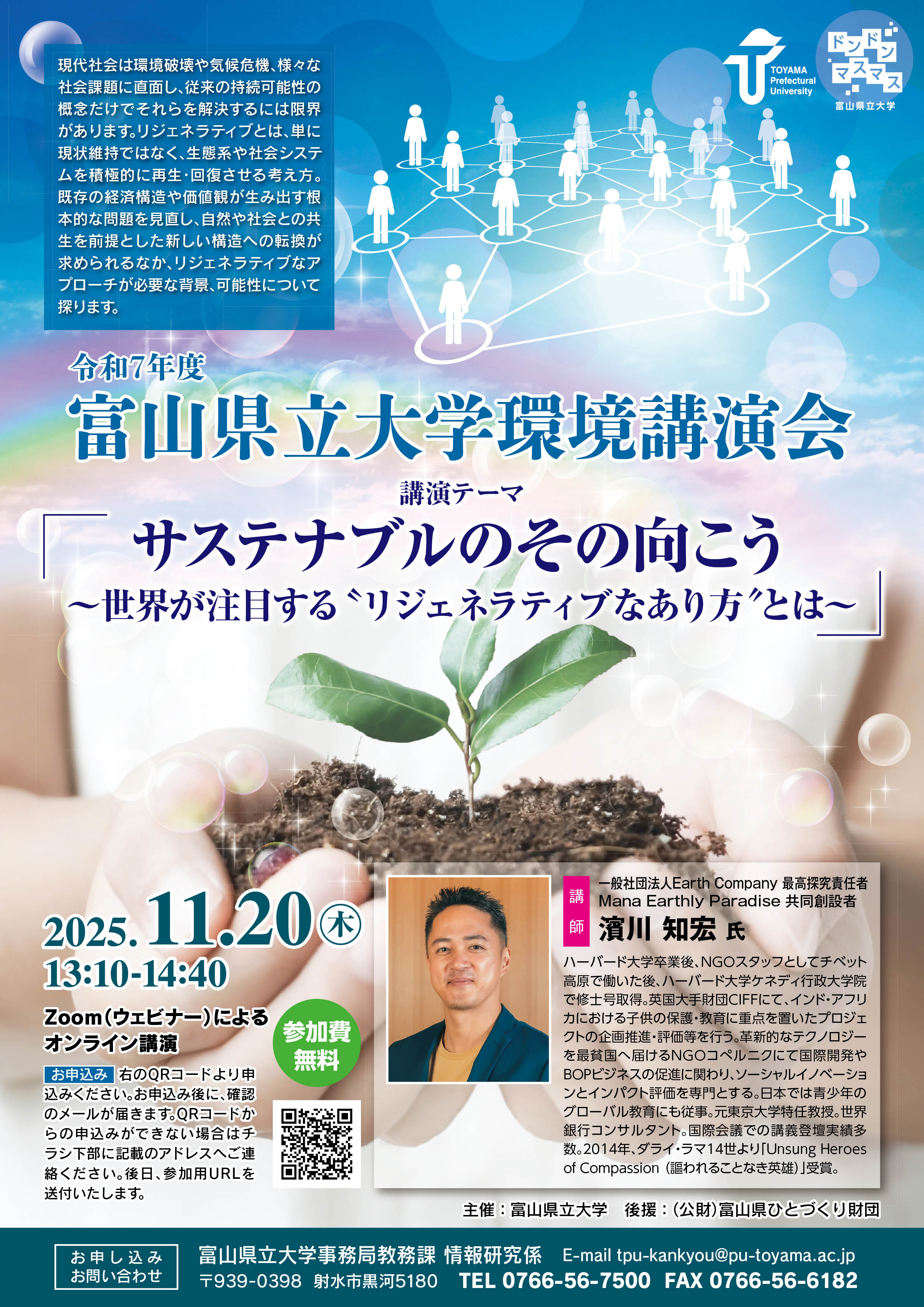 環境問題に対する知識や問題意識を学ぶために、環境分野の専門家を招聘する環境講演会を以下のとおり開催します。