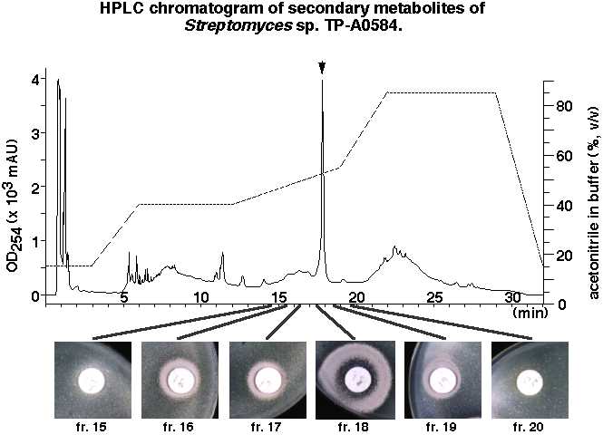 extract of TP-A0584 myceria was applied to HPLC. The elution was performed