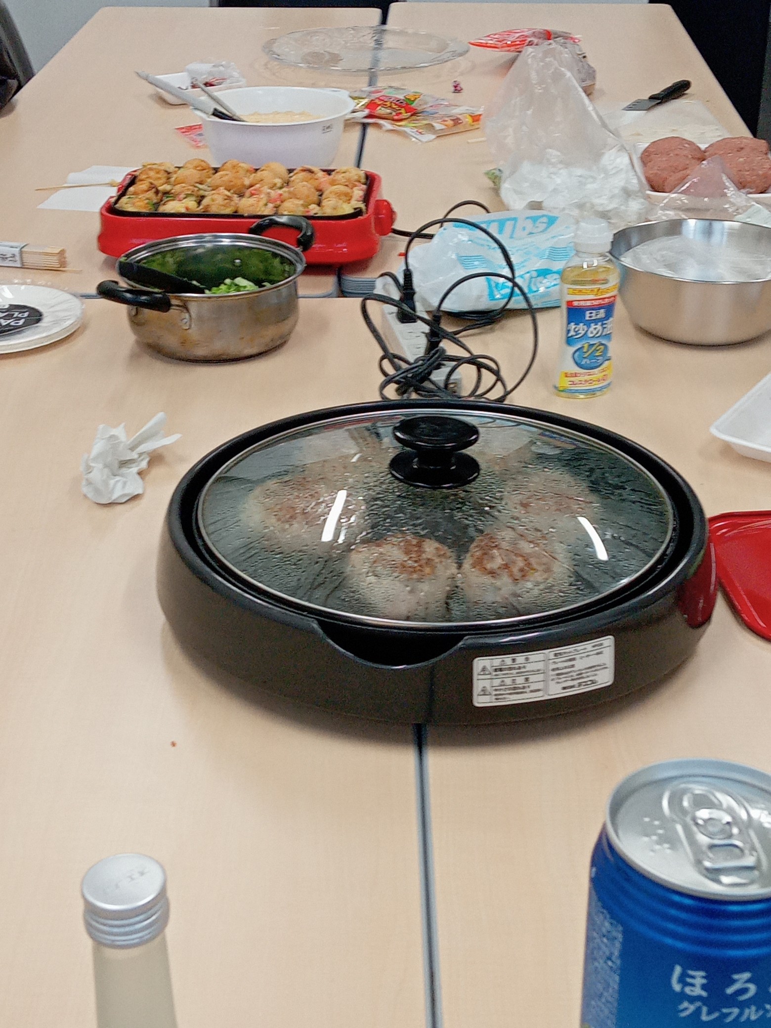 ハンバーグとタコ焼きを作って、 飲み会をしてみました。