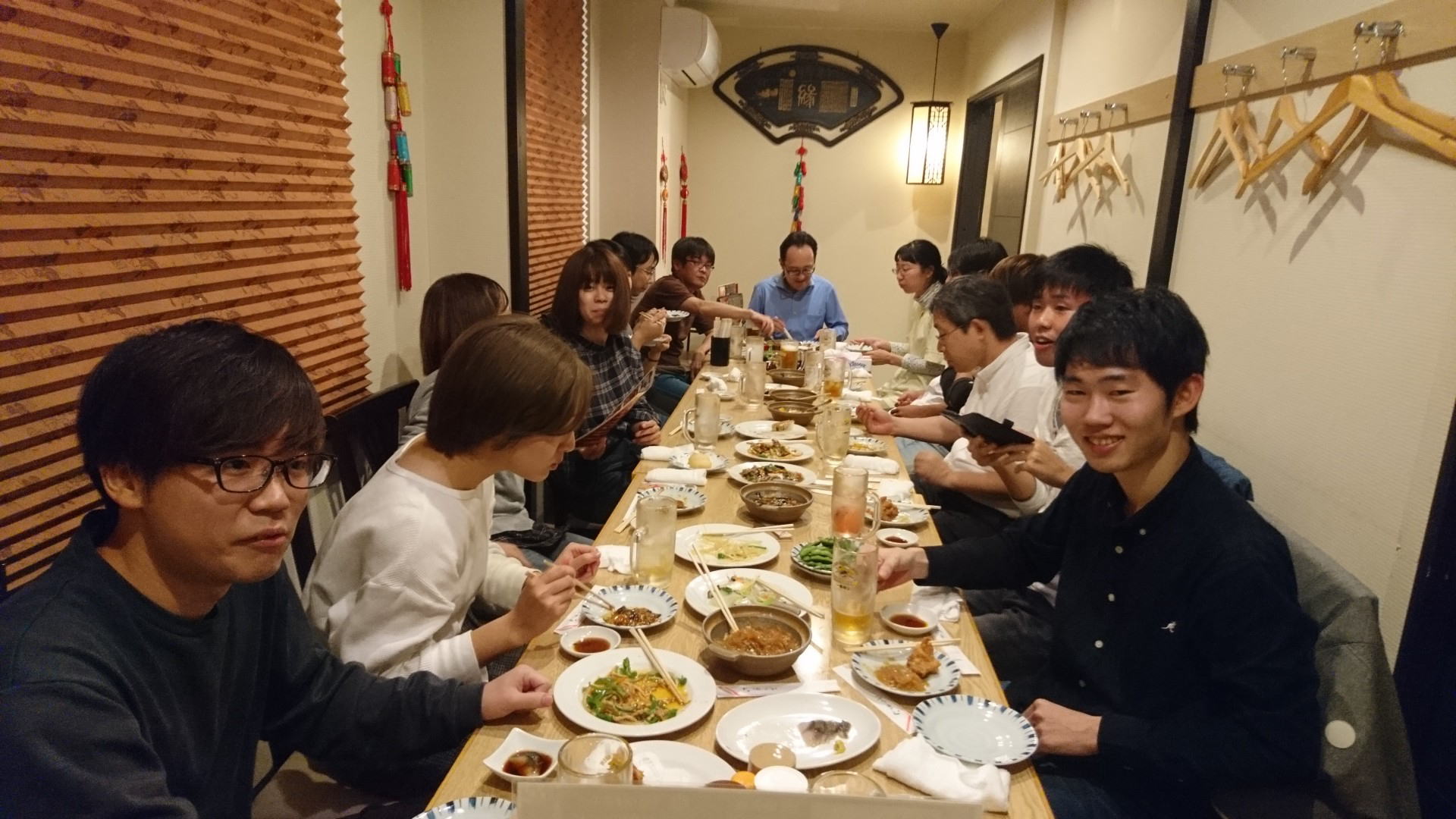 中島先生、濱田先生、山村先生と合同で、中華料理店で新歓をしました。