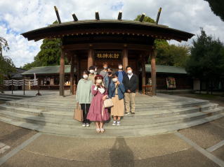 射水神社にて。安全で楽しい毎日が送れるよう、また勉学にも励むようにお祈りしました。