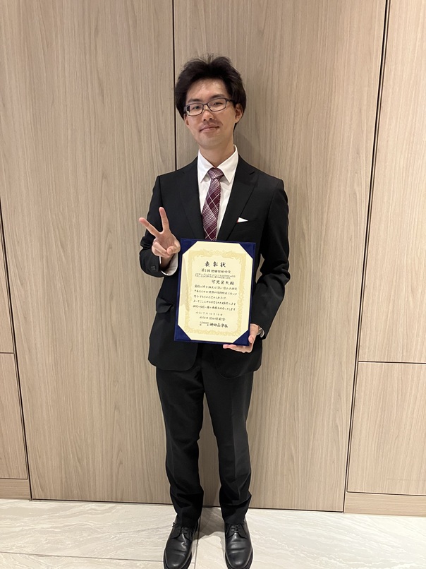 可児晃大君(R6年度博士後期課程修了) が第1回池田模範堂賞を受賞しました。おめでとうございます!