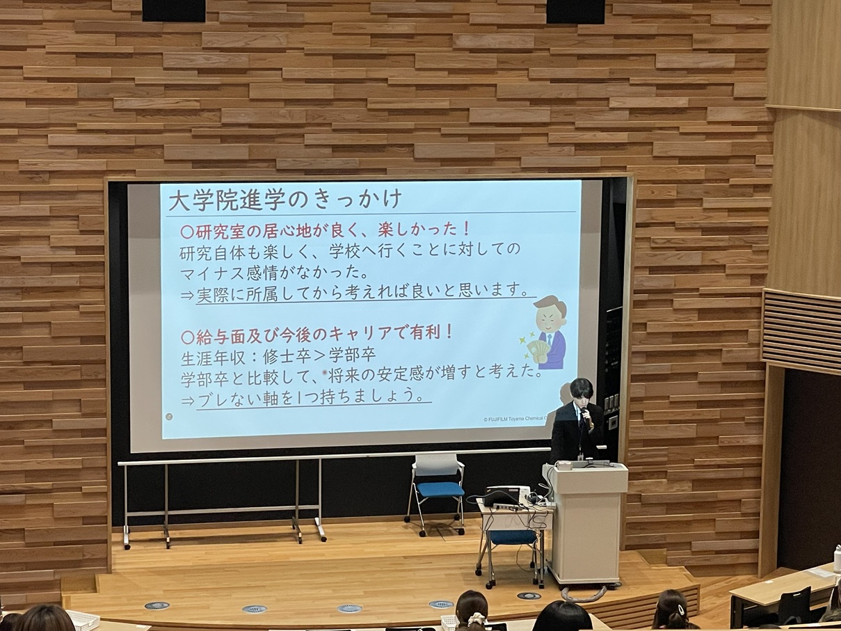 卒業生の葛西君が「県内就職した大学院生の本音トークLIVE」に登壇しました。