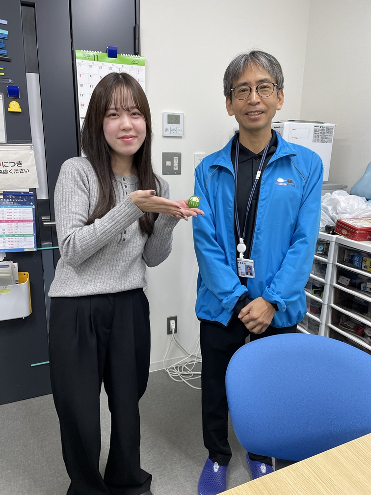 大学院前期課程修了の五十嵐君が研究室を訪ねて来てくれました。