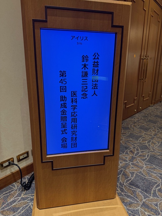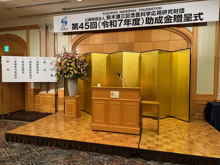 公益財団法人鈴木謙三記念医科学応用研究財団 第45回(令和7年度)調査研究助成に採択され、名古屋マリオットアソシアホテルで行われた贈呈式に出席しました。
