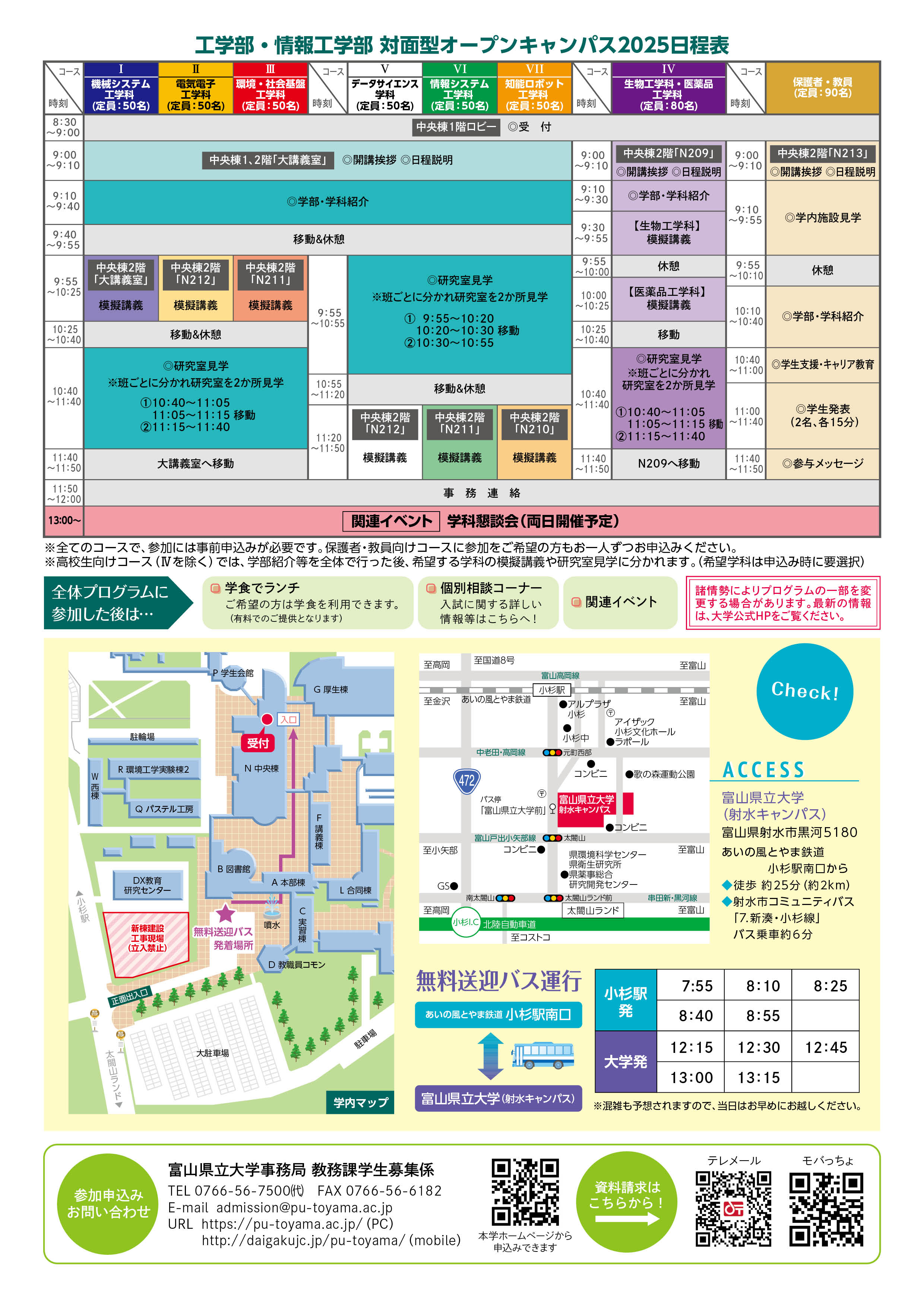 当日は、あいの風とやま鉄道小杉駅南口と本学射水キャンパスの間で無料送迎バスを運行します。