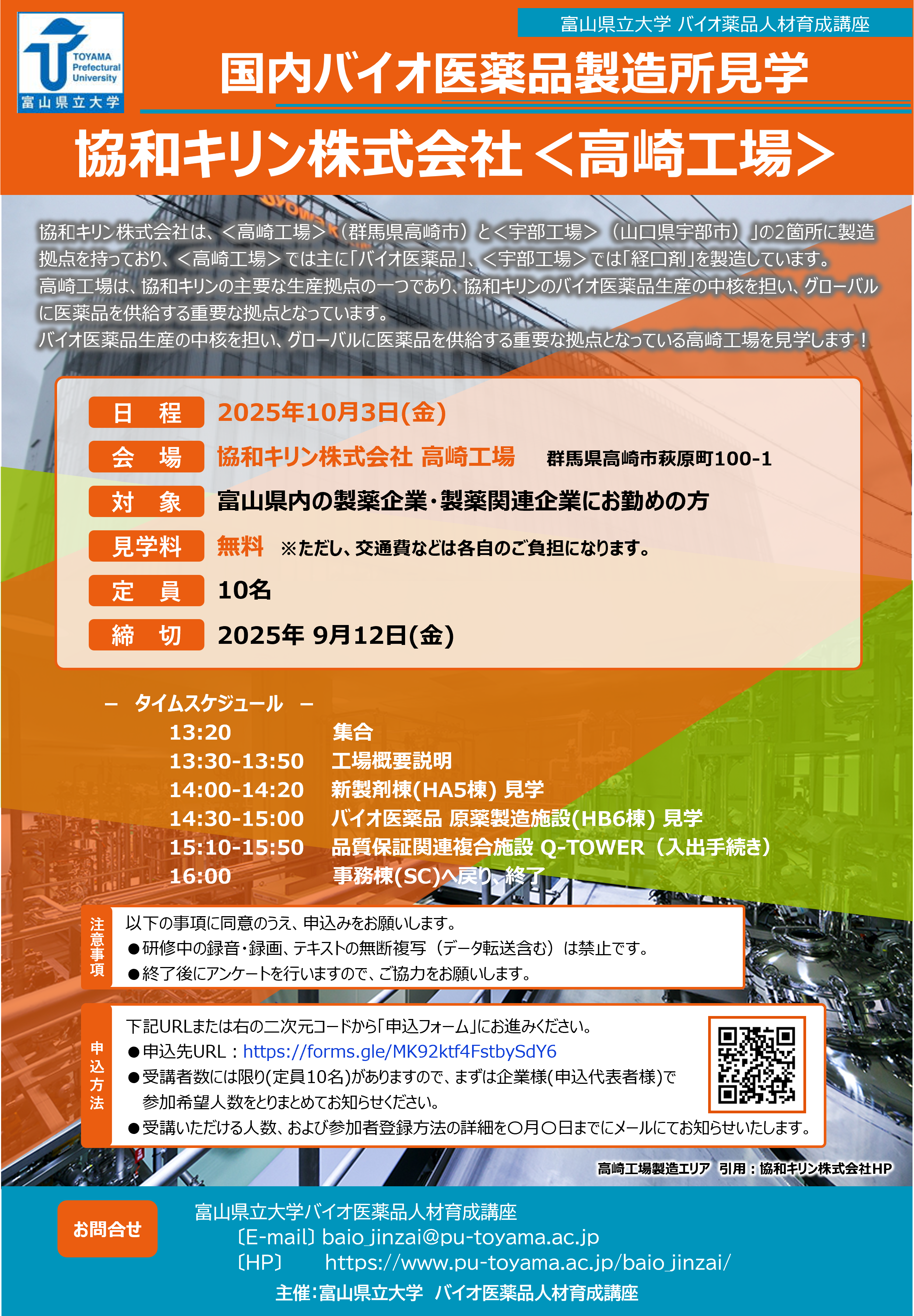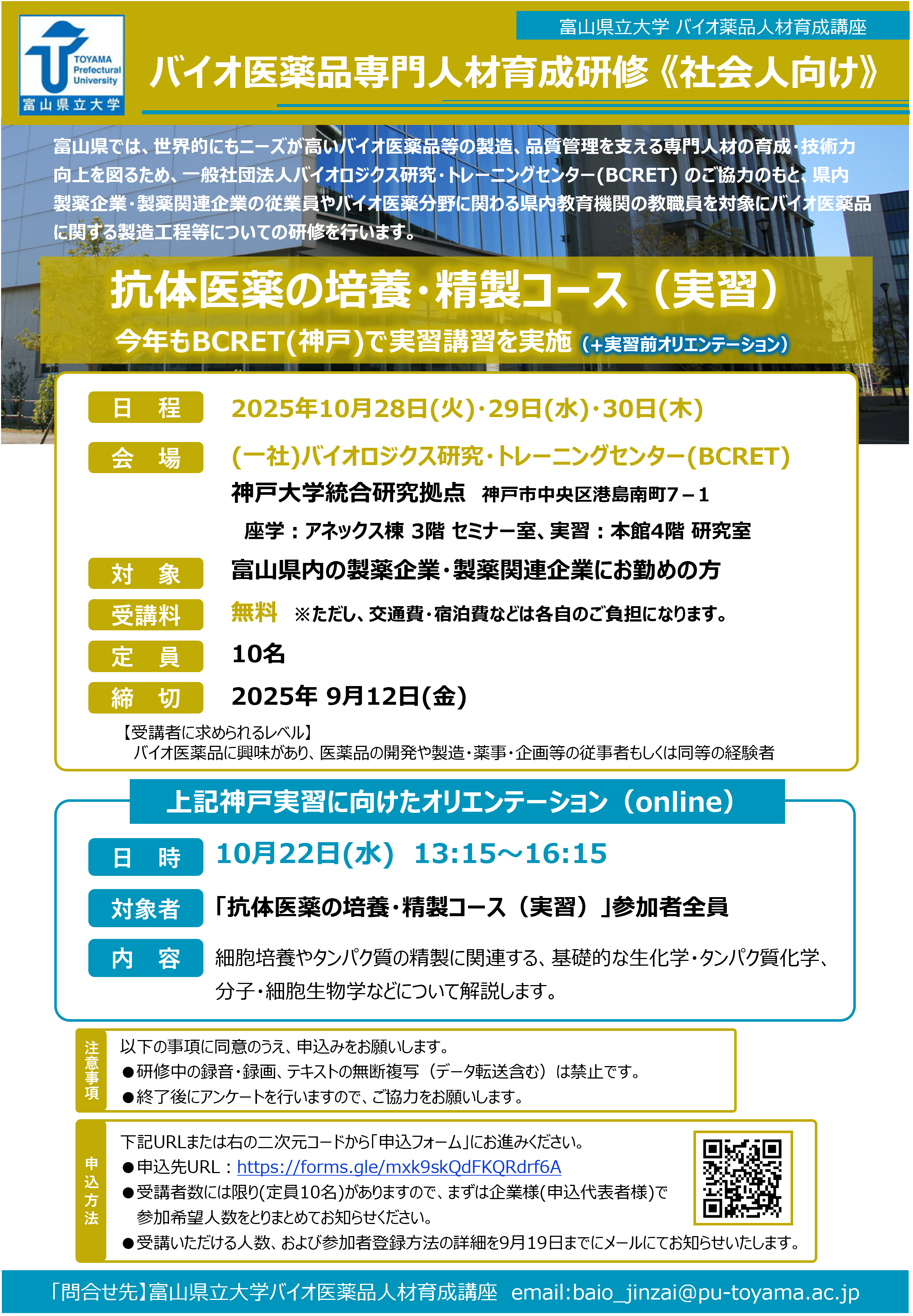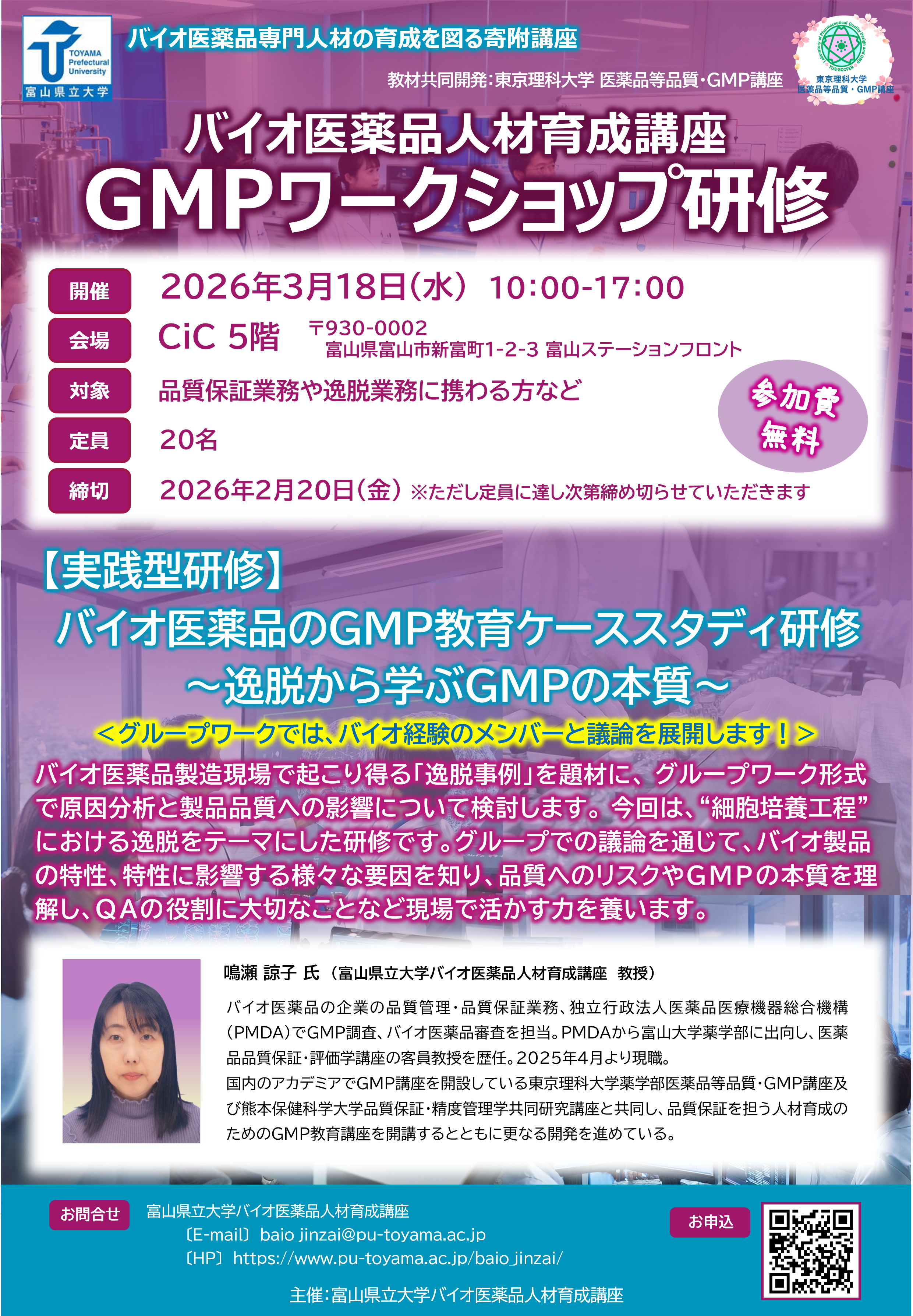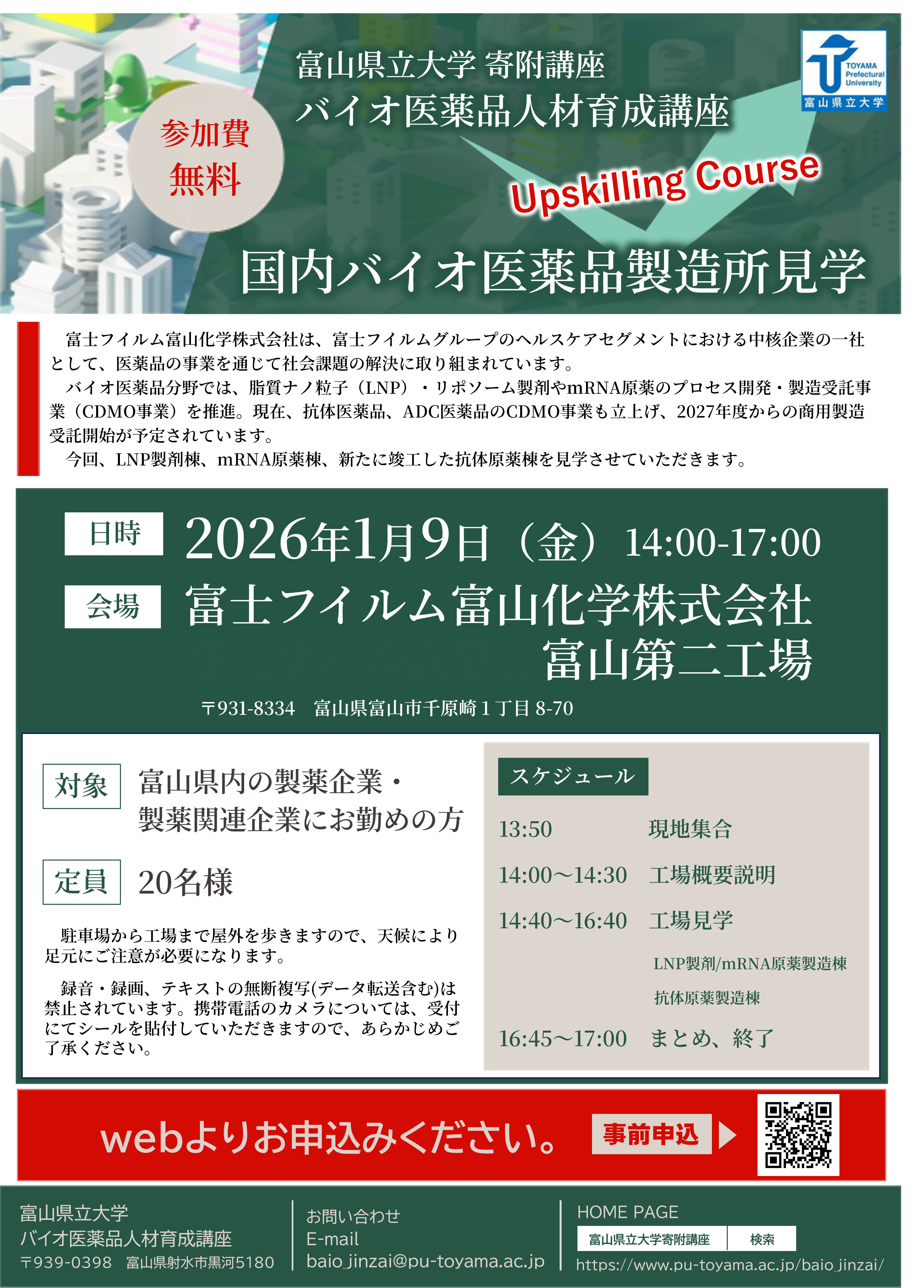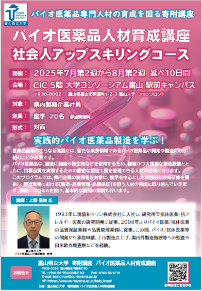 | 対 象: | 富山県内製薬企業・製薬関連企業にお勤めの方 | |
